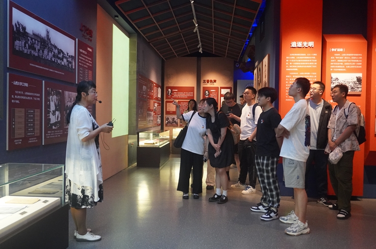 校史馆陈列着各个时期学校的发展历程,每一张照片、每一件展品、每一篇文献都在诉说着太理故事。从创建之初的拼搏奋斗,抗战年代的烽火岁月,到改革开放的崭新篇章,再到如今的繁荣昌盛。太理始终以“求实、创新”的校训为指引,书写着中国科技教育的华章。参观过程中,支部党员同志们凝神倾听,不时停留,思考着太理精神的内涵与力量,通过文字、图片、实物展示等多种形式,真切感受到学校由小到大、由弱到强的峥嵘岁月。通过参观,党员同志们更加明确了身为党员的责任使命。